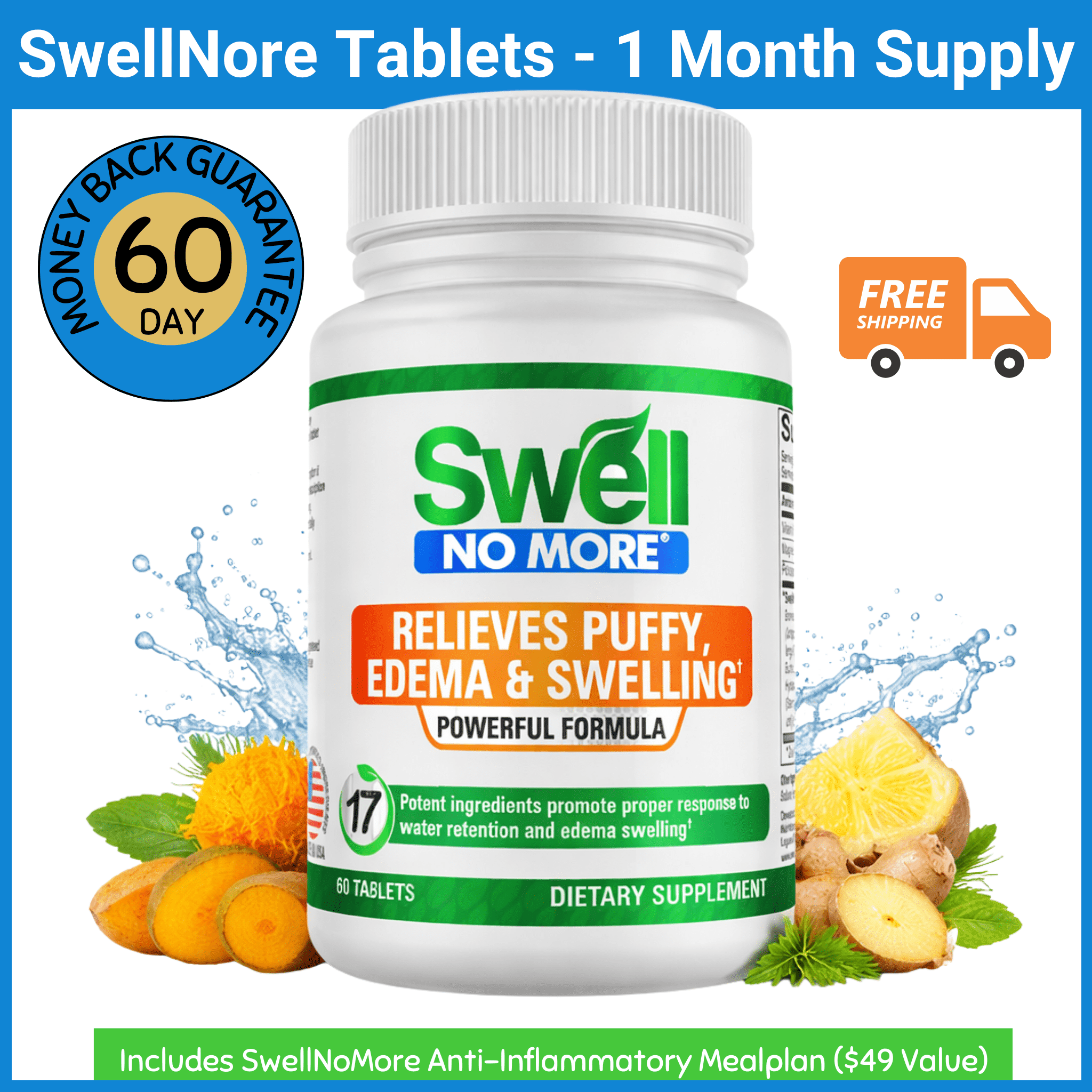 SwellNoMore | The #1 Natural Diuretic Anti Inflammatory | Get Rid of Water Retention, Inflammation, Puffiness, Swelling & Edema. Doctor Trusted | 60 Day Money Back Guaranty.
